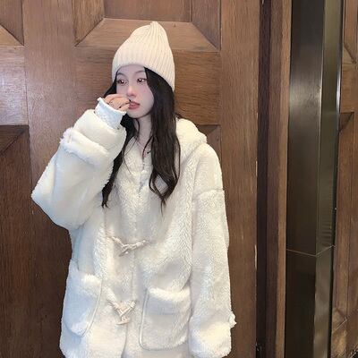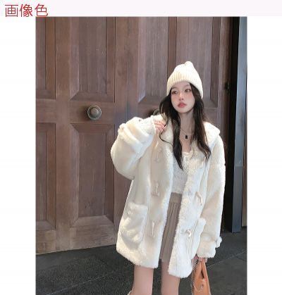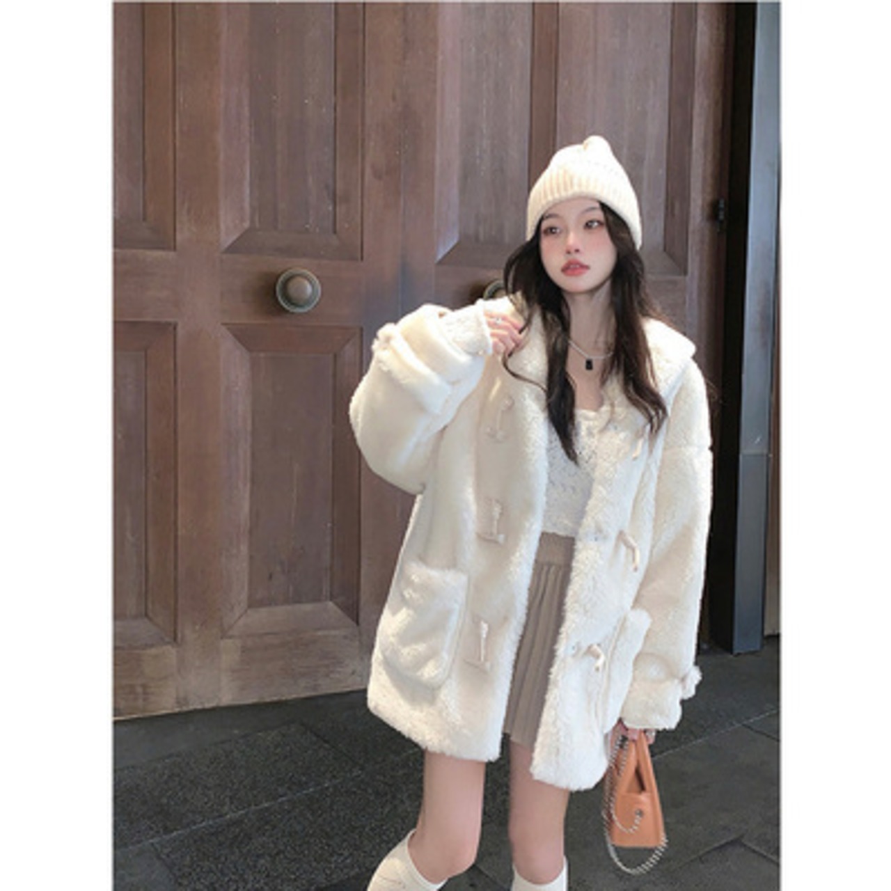 白いモコモコのコットンコートです。お尻まで隠れてあったかスタイルも隠せる☆今からの時期長く使えます‼