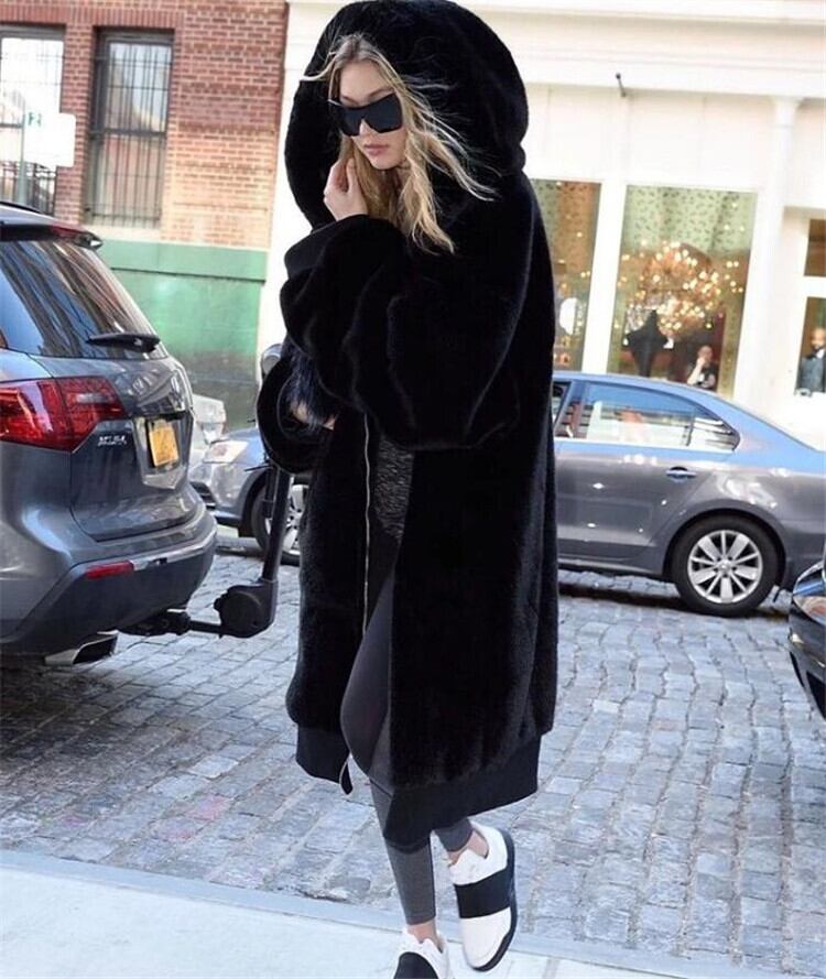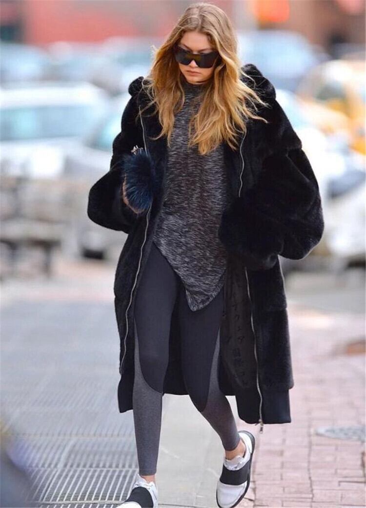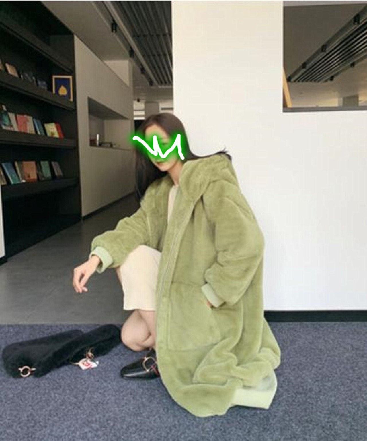 新しいスタイル 模倣レックスウサギの毛皮 厚手 ロングセクション フード コート ファー コート ジッパー