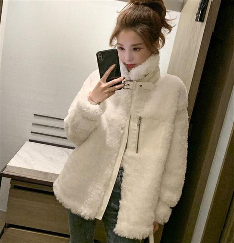 コート ゆったりする 厚手 韓国版 ファー コート トップス スタンドカラー ジッパー 暖かい