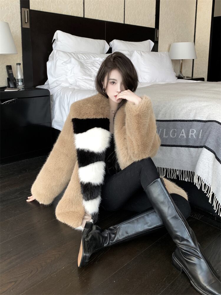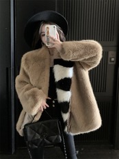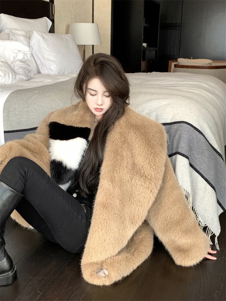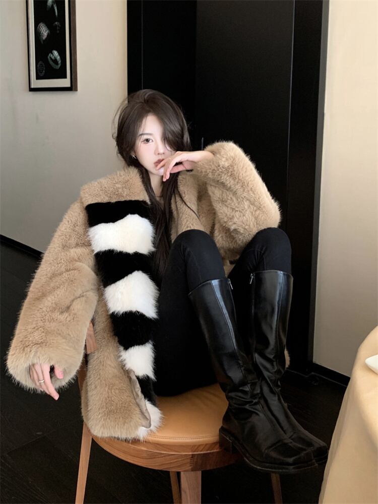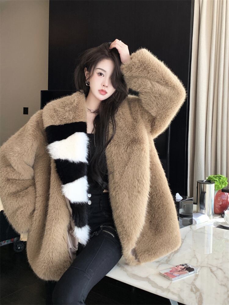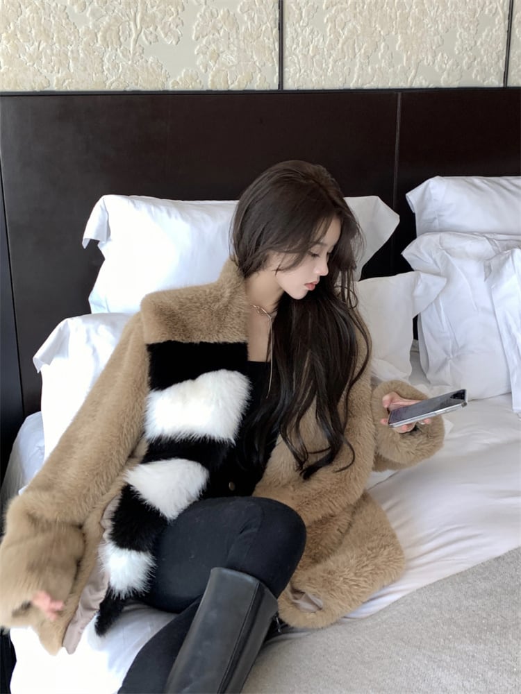 カラーマッチング ファーコート スリム フォックスファー フェイクファー コート