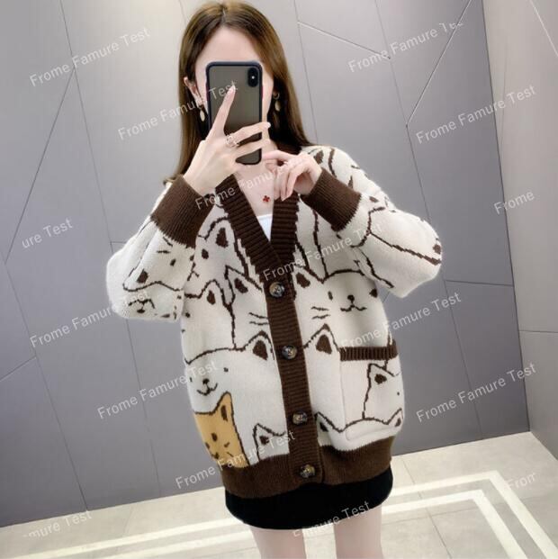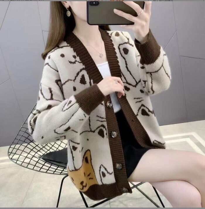 秋と冬新作 新しいデザイン韓国風ニットコートゆったり女カーディガンセーターカーディガンコート★S-4XL