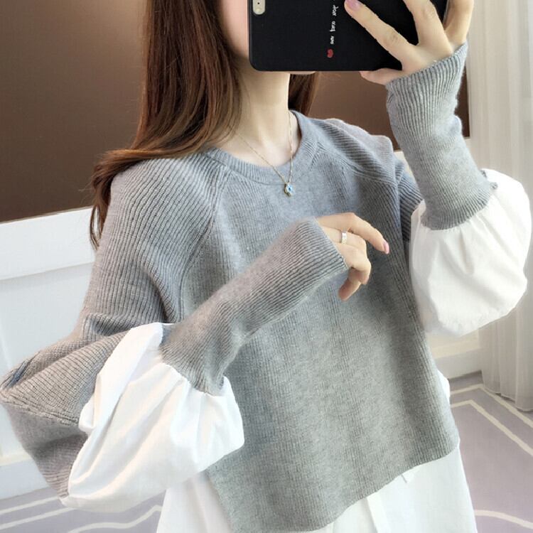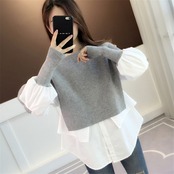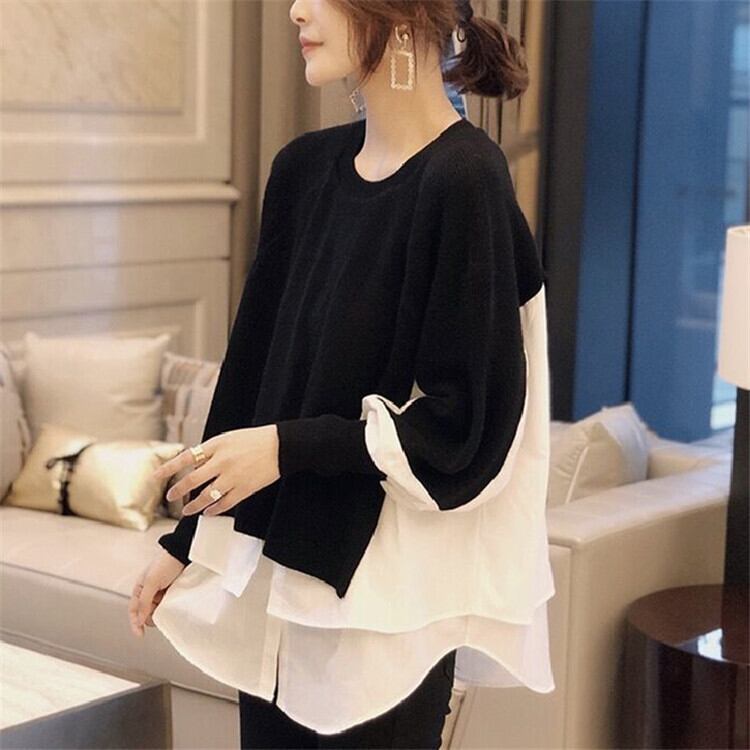新作 怠惰な風 縫付 セーター 大きいサイズ トップス ニット フェイク2ピース