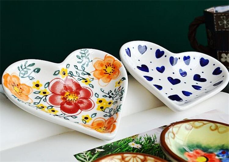 皿 ポーランド風 中古 食器 カップル 愛皿 イレギュラー 4.5インチ 日常の贈り物