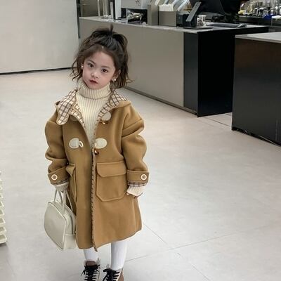 女児 羊毛の 外套 秋冬服 新しいデザイン キッズ洋服 韓国風 西洋風 中長スタイル