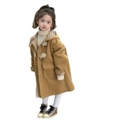 女児/羊毛の/外套/秋冬服/新しいデザイン/キッズ洋服/韓国風/西洋風/中長スタイル/帽子付き/アウターウェア