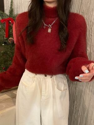 セミハイ襟/手厚い/ふわふわ/クリスマスセーター/女/冬/新しいデザイン/ルース/何でも似合う/短いスタイル/ニット/トップス