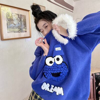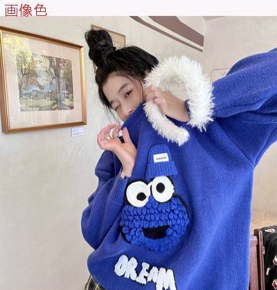 若くなる/暖かい/ブルー/ニットのセーター/女/秋冬/新しいデザイン/ステレオ/ハット/手厚い/ルース/中長スタイル/トップス