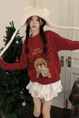 冬/新しいデザイン/韓国風/ルース/レイジー風/クリスマスレッド/エルク/ヘッジ/セーター