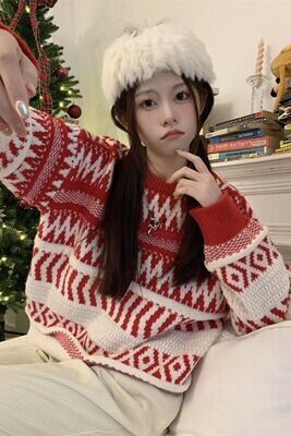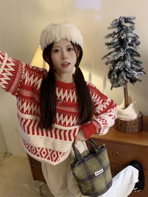 設計感/クリスマス/ニューイヤーレッド/セーター/女/冬/新しいデザイン/何でも似合う/スキニー/ルース/手厚い/ニッティング/トップス