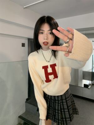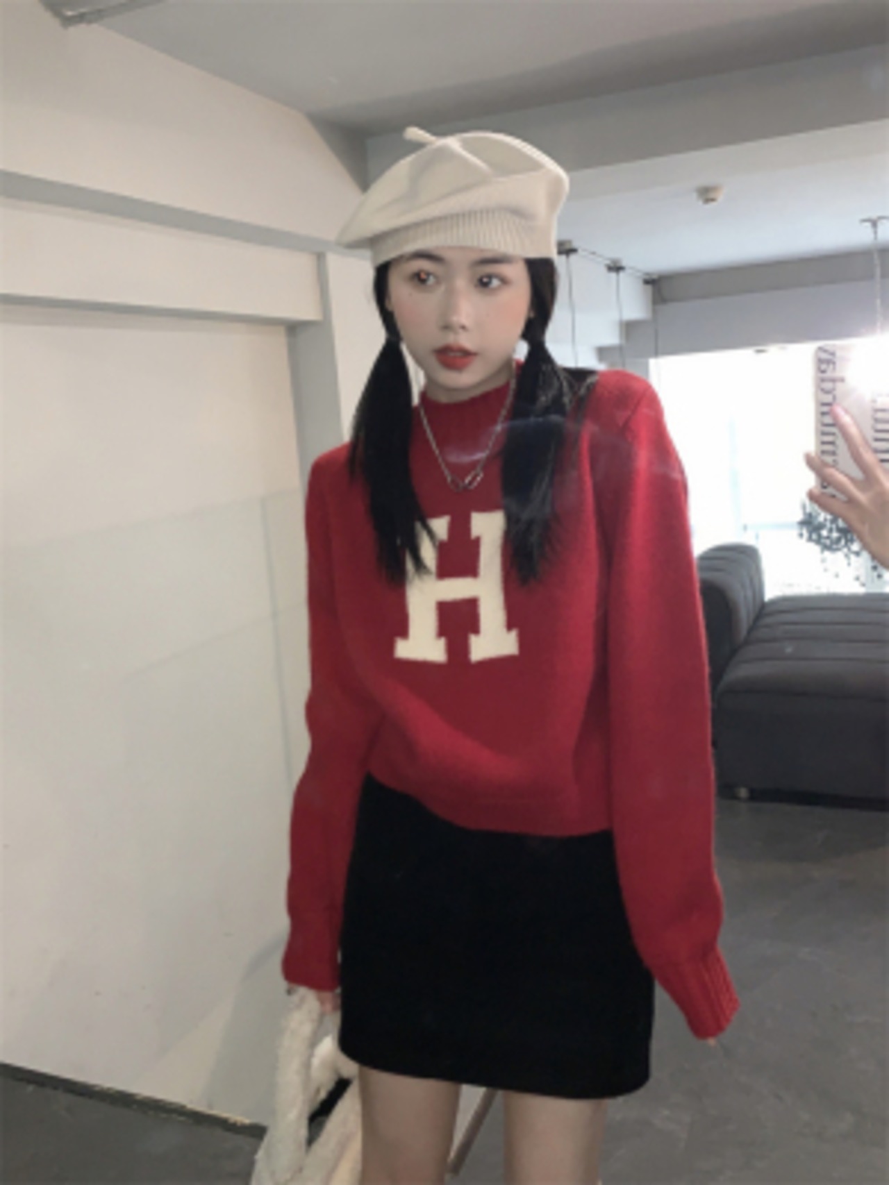 インフルエンサー/人気仕様/レターズ/クリスマスレッド/ニットのセーター/女/冬/新しいデザイン/小さい体/長袖/短いスタイル/トップス