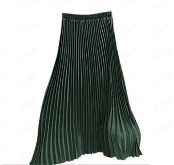 細かいプリーツデザイン:歩くたびに綺麗に広がるプリーツは女性らしさを演出。さらっと広がるので足ばきももたつきません。