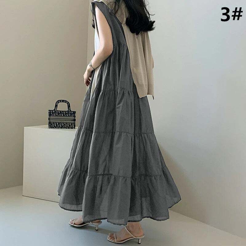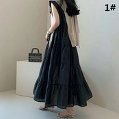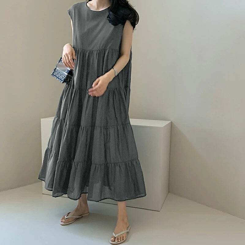 夏新作 ワンピース レディース ロング丈ワンピース 韓国風 ノースリーブ ラウンドネック 体型カバー